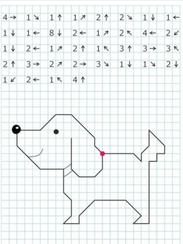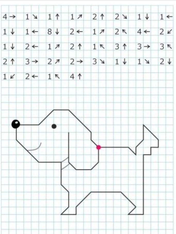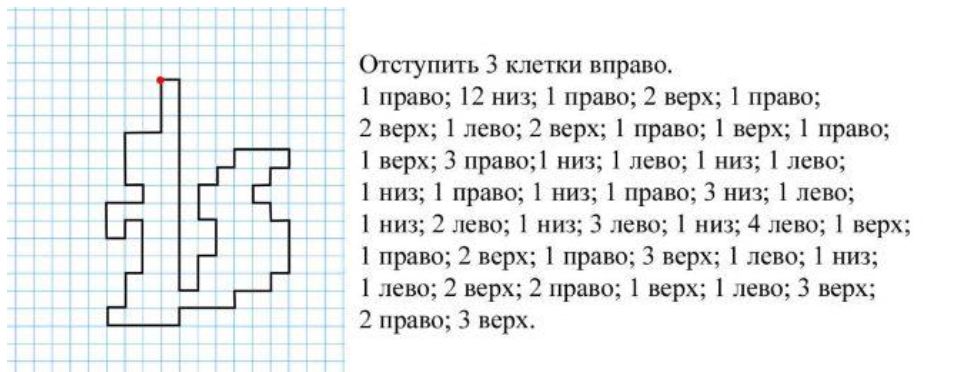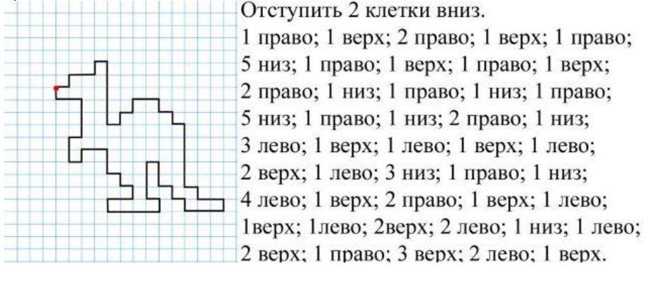 Графические диктанты для дошкольников по клеточкам. Графический диктант: что это такое. Графические диктанты для дошкольников по клеточкам. У каждого ребенка богатая фантазия и желание играть всегда и всюду. Эти врожденные способности можно использовать для планомерной подготовки дошкольника к новому для него периоду жизни – школьной поре. Графический диктант – дидактическое задание, позволяющее развивать мышление и воображение ребенка, его возможности «видеть» в проекции, ориентироваться в пространстве. По сути, работа с карандашом не представляет ничего сложного. Ребенку нужно лишь нарисовать конкретную картинку, двигая карандашом в нужном направлении, выполняя рекомендации взрослого, проводящего графический диктант. Главное, что должен уяснить будущий ученик: отвлекаться нельзя, иначе вместо красивой и правильной картинки получится недоразумение, которое расстроит ребенка. Графические диктанты не потребуют от дошкольника художественных способностей. Ему нужно только четко следовать инструкции, чтобы получился хороший результат. Сложных иллюстраций воспроизводить не придется. В графической коллекции простые изображения: слон, жираф, другие животные, Чем полезен графический диктант для дошкольников. С помощью графического диктанта можно подготовить ребенка к выполнению заданий в школе. Ребенок чувствует свою ответственность, что положительно сказывается на его самооценке. Графический диктант помогает развивать многие качества: внимательность; усидчивость; дисциплину. У дошкольника активно развиваются: воображение; восприятие; словарный запас; мышление; память; внимание к деталям; кругозор. Стоит отметить и развитие физических возможностей. Это: координация движений; мелкая моторика. Как правильно выполнять графический диктант. Чтобы ребенок получил удовлетворение от проделанной работы, нужно придерживаться правил проведения графического диктанта. Самое первое и основное правило – не спешить. Если ребенок не успевает за инструкцией педагога или взрослого, проводящего занятие, если из-за торопливости ошибается, вследствие чего картинка не получается, то такой графический диктант пользы не принесет. Второе правило – четкий инструктаж дошкольника. Непонятое задание не будет выполнено верно. Инструкция к диктанту Инструкция начинается с точки на листе бумаги. Вернее, педагог предварительно готовит лист в клеточку, на котором уже стоит точка. Это старт для будущей картинки. Если на графическом диктанте ребенок впервые, дошкольнику нужно помочь. Для этого педагог указывает на листе бумаги стрелками направление, в котором должен двигать карандаш ребенок, чтобы получилась вожделенная фигура. Это сначала нужны стрелки. На втором и последующих занятиях ребенок может ориентироваться без них, следуя указаниям взрослого. Более того, и точку ставить не придется. Ребенок сам выберет, где будет старт, опять же следуя совету педагога. Педагог должен помнить, что каждое действие проговаривается. Каждый шаг: влево, вправо, вверх, вниз. Также педагог должен объяснить дошкольнику, что одна клеточка – это один шаг. Важно объяснить, что такое вертикально, горизонтально. Рассказать о наклонной линии, чем она отличается от вертикальной и горизонтальной. Эти первоначальные знания помогут ребенку качественнее выпол