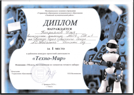 Киприянов Илья в районном конкурсе проектной деятельности "Техно -мир"
