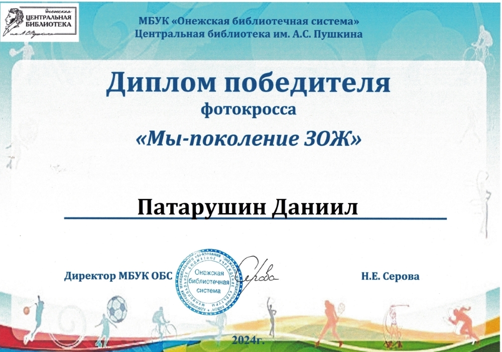 Патарушину Даниилу за участие в мероприятиях Всероссийского дня ходьбы
