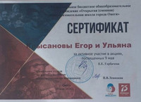 Крысановы Егор и Ульяна,за активное участие в акциях,посвящённых 9 мая