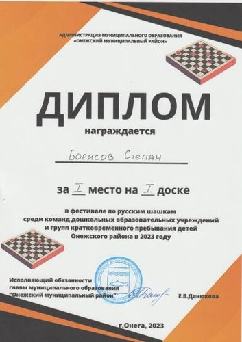 Борисов Степан за 1 место "Фестиваль по русским шашкам 2023".