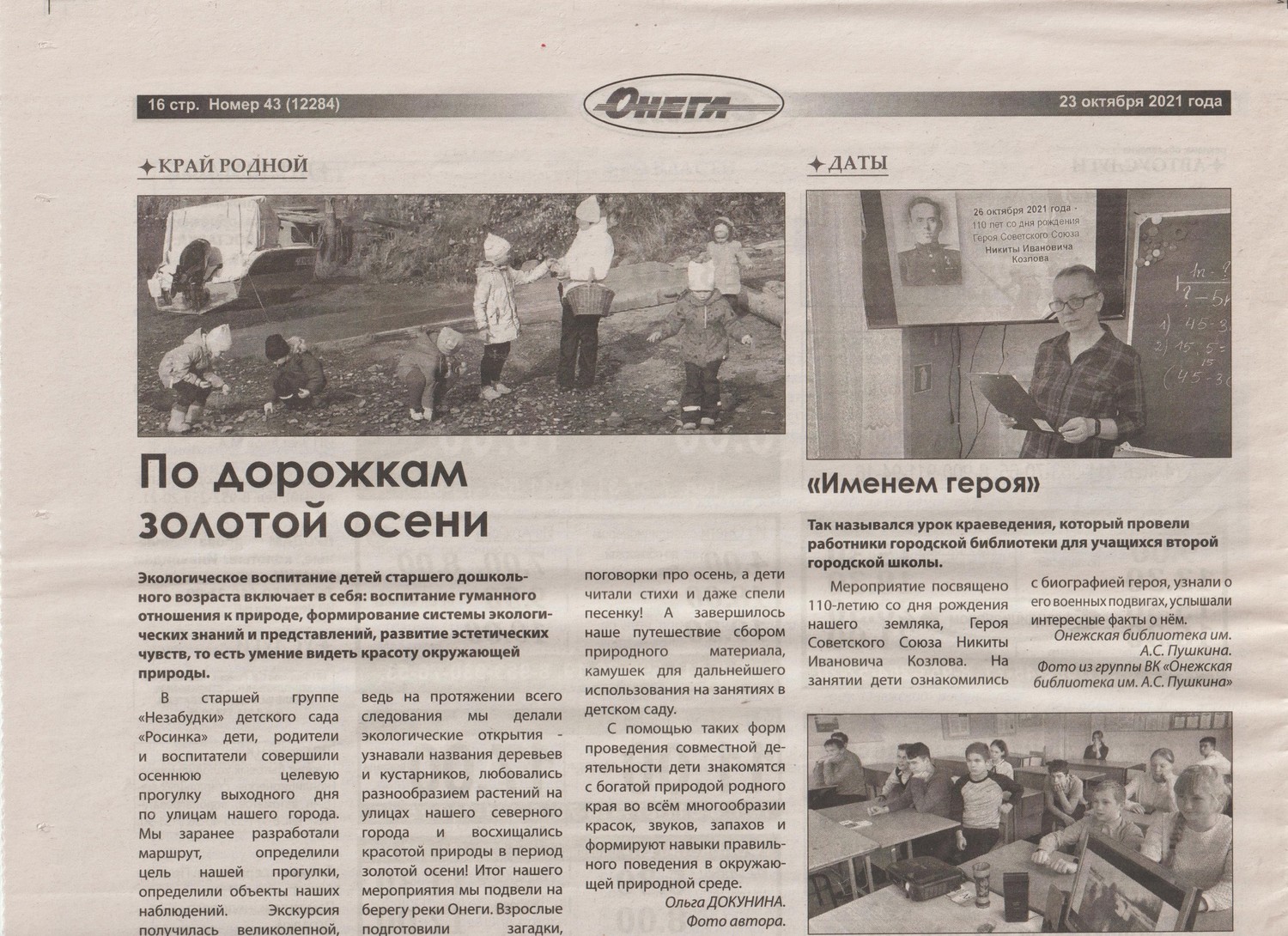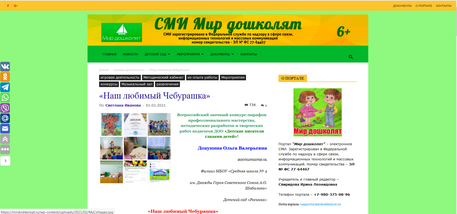 Публикация статьи в сетевом информационно-методическом журнале АО ИОО "Северная Двина" (январь 2023 г.) Данная статья освещает опыт работы ДОУ по формированию партнерских взаимоотношений с учреждениями культуры города
